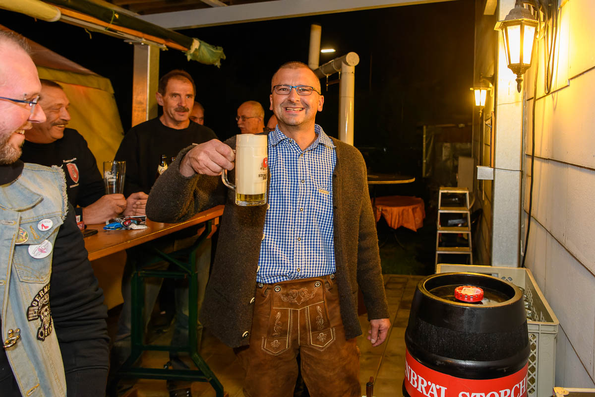 Mit unserem tollen Zelt bekommt unser Stüble-Garten ein ganz besonderes Flair. Gemeinsam feiern wir Oktoberfest mit Fassbier und Gockel bzw. Braten. Neben vielen tollen selbstgemachten Salaten ist vor allem der Bauchladen von Martina in jedem Jahr gefragt: Lebkuchenherzen, Erbeer-Limes, selbstgemachte gebrannte Mandeln und noch weitere kleine Überraschungen werden gegen eine kleine Spende gerne genommen. Alles in allem ein wunderbarer Abend, der Alt und Jung zusammenbringt und das Ende der Zweirad-Saison bedeutet.